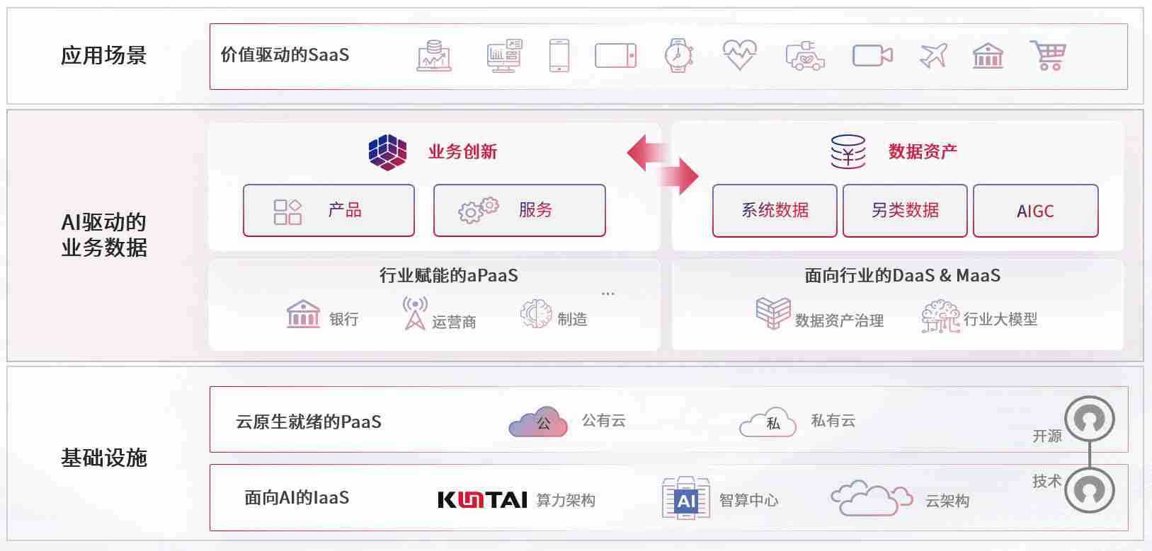 数字时代,,,,围绕企业数字化转型的关键要素,,,亚洲必赢数码开创性的提出数云融合战略和技术体系框架,,,着力在云原生、、数字原生、、、、AI原生和信创产业上架构产品和服务能力,,,为处在不同数字化转型阶段的快消零售、、、、汽车、、、、金融、、医疗、、、、政企、、、、教育、、、运营商等行业客户提供泛在的敏捷IT能力和融合的数据驱动能力,,,构建跨界融合创新的数字业务场景和新业务模式,,助力企业级客户建立面向未来的核心能力和竞争优势,,全面推动社会的数字化、、、智能化转型升级。。。。